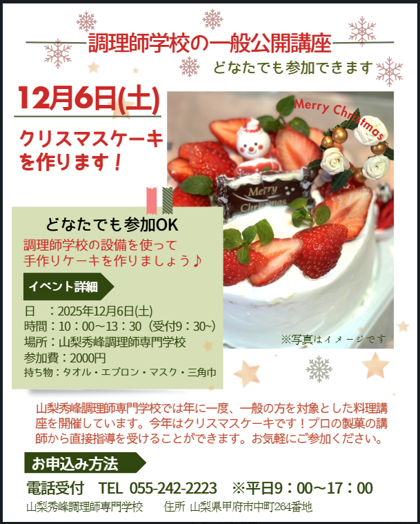 3. 一般の方向け クリスマスケーキ講座を開催します